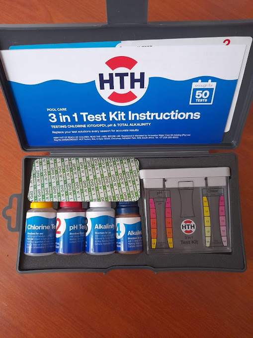 This test kit comes in a handy and durable blue box containing all you need to measure the most important swimming pool water parameters. Measure free chlorine, pH, Total Alkalinity and Acid Demand once a week to check if water is healthy and balanced.